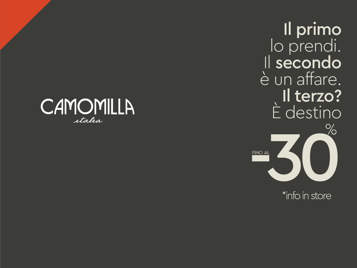 Da Camomilla Italia più acquisti, più sconti! Con 2 articoli hai il 20% di sconto, con 3 articoli il 30%.