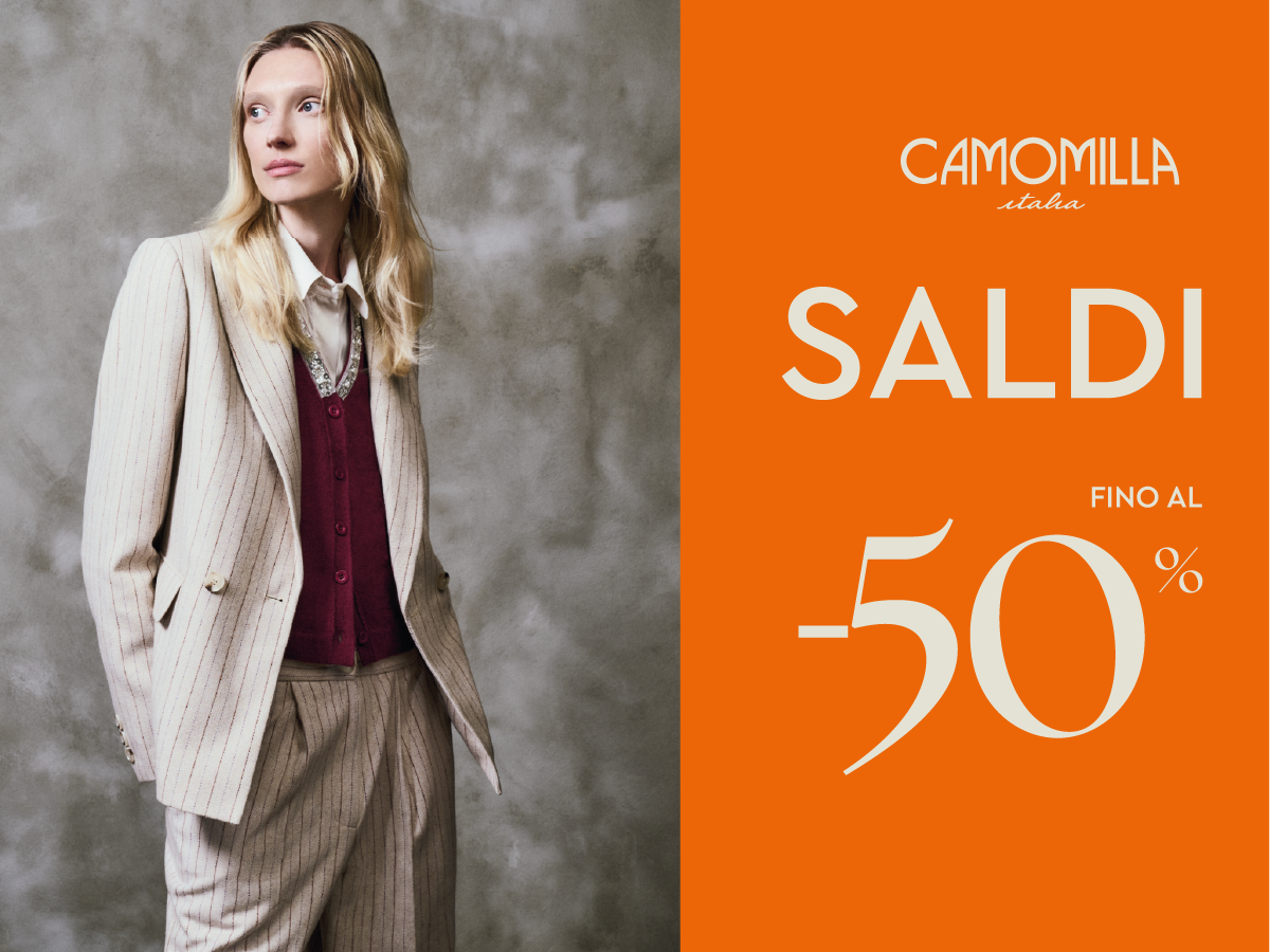 I SALDI da Camomilla Italia continuano! Fino al -50% di sconto su piumini, cappotti, tailleur, maglieria, accessori e tante altre imperdibili occasioni. Ti aspettiamo in store!
