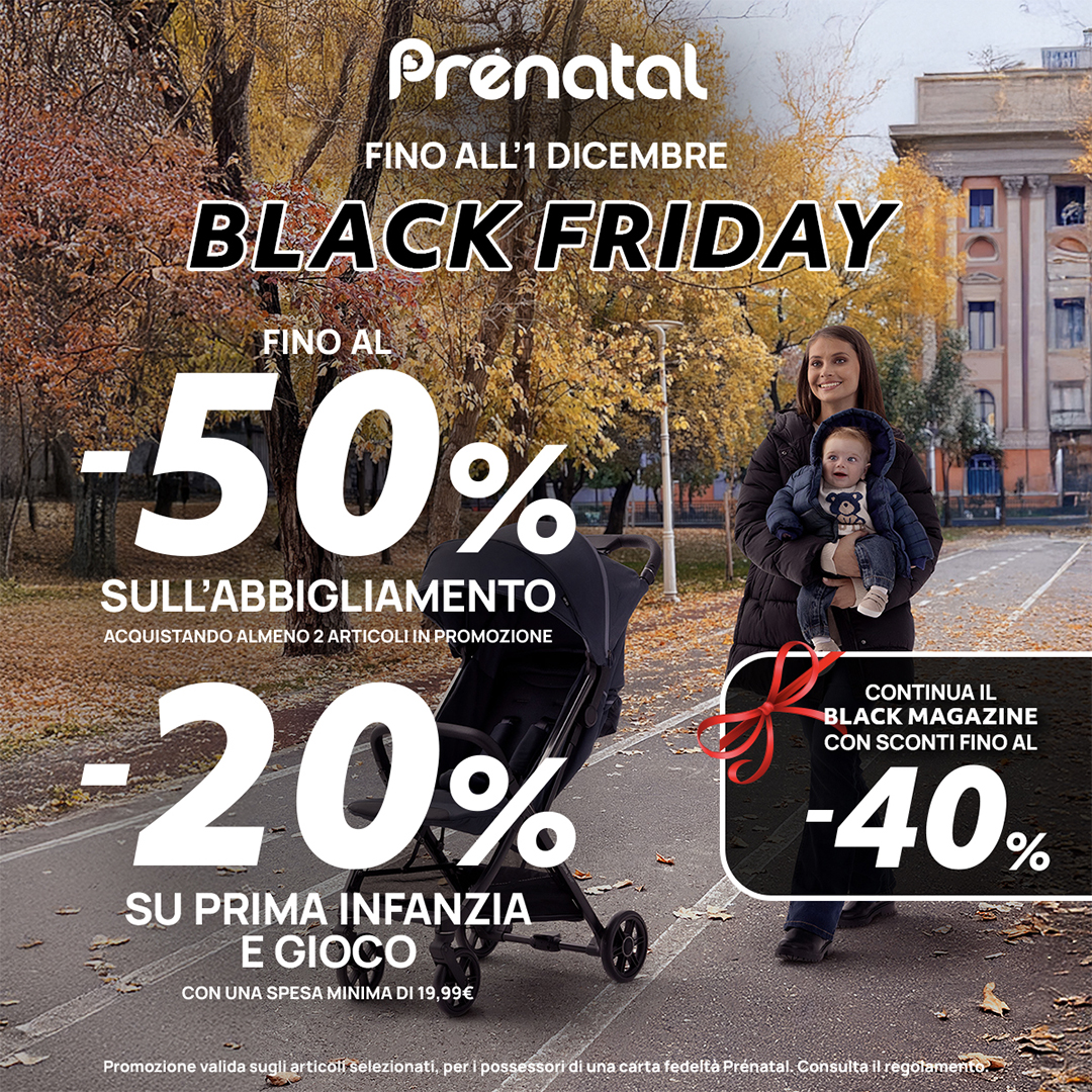 Da Prénatal è arrivato il BLACK FRIDAY: sconto fino al -50% sull’abbigliamento e sconto del -20% sulla prima infanzia.