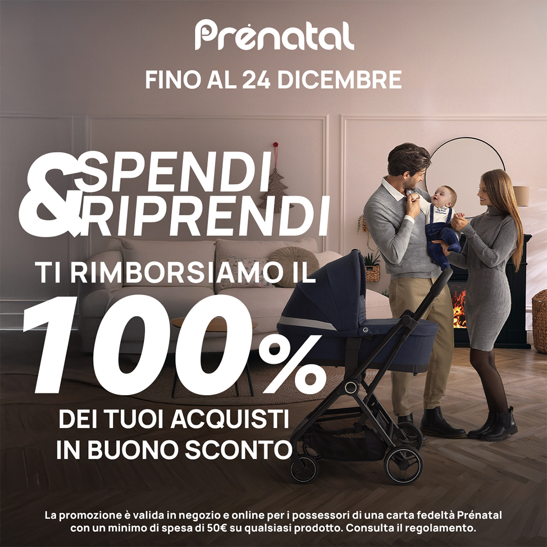 Da Prénatal è arrivata la Spendi & Riprendi: ti rimborsiamo i 100% dei tuoi acquisti in buoni sconto. Ti aspettiamo in negozio!